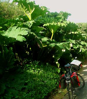 Wilder Rhododendron und grünes Efeu wuchern zwischen den Bäumen und erreichen teilweise eine Höhe von sechs Metern. Staunend stehe ich vor einer Pflanze, die mit ihren riesigen Blättern an unseren Rhabarber erinnert. Nur mit dem Unterschied, daß die Blätter einen Durchmesser
