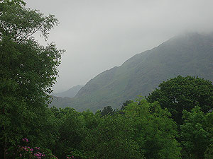 Hinter dem Kenmare River verlassen wir endlich die stark frequentierte und von Killarney herkommende N 71 und befinden uns nun auf dem Ring of Beara. Die Ruhe um uns herum tut ausgesprochen gut. Wir hören den Regen, wie er auf das üppige Laubdach der Bäume niederschlägt und dazu das vereinzelte
