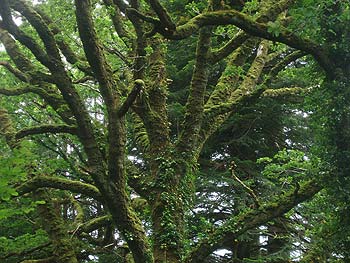 Teilweise sind die Bäume so vermoost, daß man ihre Rinde nicht sehen kann.