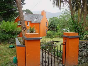Zwitschern von Vögeln. Unterbrochen wird das alles von dem Rattern eines Traktors, der eine zeitlang hinter uns fährt, dann aber in irgend einen Nebenweg zu einem Gehöft abbiegt. Die Ruhe hier auf Beara wird uns um so mehr bewußt, nachdem wir den Auto und Busverkehr auf den Halbinseln Dingle, Kerry und um Killarney herum erlebt haben. Unser Sträßchen geht schon die ganze Zeit an bewaldeten Berghängen vorbei, die sich irgendwo im Nebel verlieren. Das ändert sich, als wir in Tuosist auf einen landwirtschaftlichen, aber asphaltierten Weg abbiegen, der durch eine felsige und bizarre Klippenlandschaft führt. Acht Kilometer weiter erreichen wir einen Minihafen mit ein paar angerosteten und bunten Fischerbooten, die munter im Wasser schaukeln. Wir befinden uns nun in einer Bucht bei Dereen Garden und sind überwältigt von seiner üppigen Vegetation, die an einen Urwald erinnert.