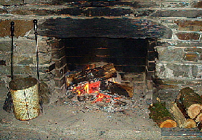 Kaminfeuer in der Herberge.