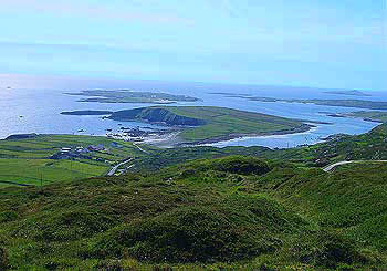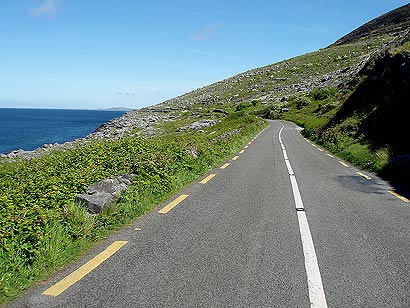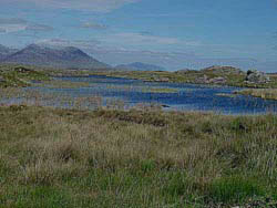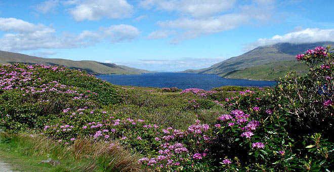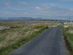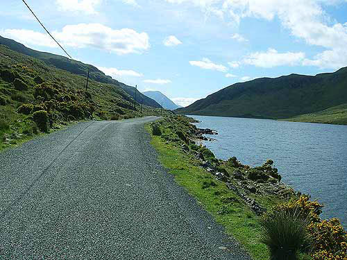Hinter Galway ändert sich die Landschaft. Die Gegend wird zunehmend rauher je mehr wir uns der Connemara nähern. Aus der kargen Landschaft ragen schroffe Berge in die Höhe. Die saftig grünen Wiesen sind übersät mit Felsbrocken und die vielen Seen blitzen tiefblau aus der hügeligen Landschaft heraus. Immer wieder zeigt sich das Meer mit den zahlreichen vorgelagerten Insel- chen von seiner schönsten Seite. Wir passieren Rossaveel. Von hier geht eine Fähre zu den autofreien Aran Islands. Ein Abstecher nach dorthin ist bestimmt sehr lohnend.