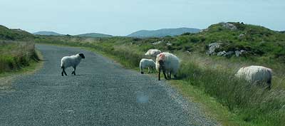 Schafe sind keine Seltenheit auf den Nebenstraßen der Provinz Galway.