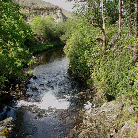 Wir passieren einen der zahlreichen Wildbäche am Fuße der Twelfe Pins.