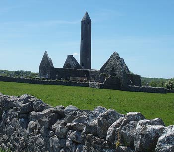 auf irgend eine Art und Weise strahlt sie eine unbeschreibliche Friedlichkeit aus. Jedenfalls auf mich! Die alte und bereits verwitterte Klosteranlage mit ihrem raketenartigen Rundturm kann man schon von Weitem erkennen. Vorbei an ein paar Dolmen und einem steinigen Ringfort nähern wir uns wieder dem Meer und befahren anschlie ßend eine traumhaft schöne Küstenstraße. Eine Brandung