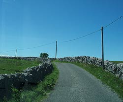 letztes Jahr erlebt habe, fangen die Steine an zu glitzern. Steinwälle umsäumen die kleinen Sträßchen und Schotterpisten, so wie es in anderen Ecken Irlands die Hecken tun. Die Gegend hier ist recht einsam und