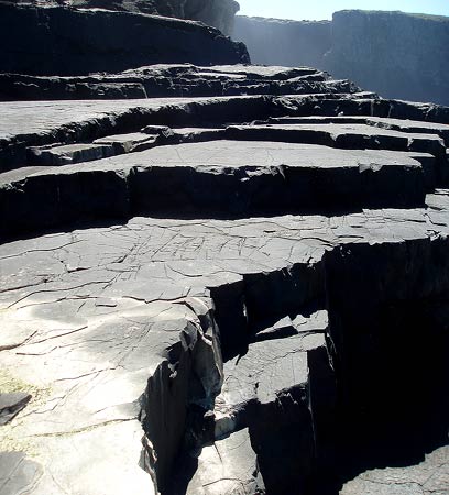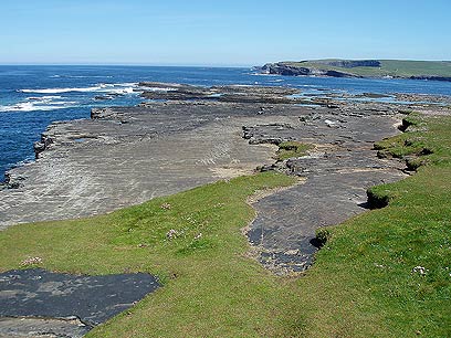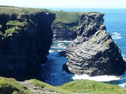 Heute ist unser letzter Tag mit dem Leihwagen. Am frühen Abend müssen wir ihn am Kerry Airport abgegeben haben. Auf dem Weg nach dorthin machen wir einen Zwischenstopp in Ennisstation, einem kleinen, typisch irischen Städtchen. Auf einen Besuch der “Cliffs of Moher” verzichten wir. Zuviel Tourismus und überteuerte Parkplätze. Als Alternative dazu steuere ich zielstrebig die Klippen von Kilkee an, wo ich bereits letztes Jahr schon einmal war. Sie sind zwar nicht so spektakulär, was ihre Höhe betrifft. Aber dafür sind die Klippen aus Schiefer um so malerischer. Eine kleines Sträßchen führt am Rande der Klippen entlang, und ein Wanderweg lädt darüber hinaus zu einem wildromantischen Klippentripp ein.