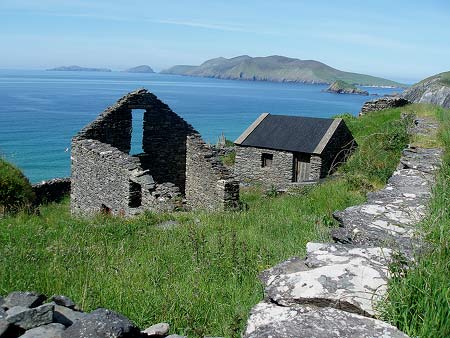 Hausruinen ohne Dächer sind keine Seltenheit in Irland, und das hat einen Grund. Früher gab es einmal eine Dachsteuer, und prompt haben die Großgrundbesitzer die Dächer von den nicht wirtschaftlichen Häusern einreißen lassen, damit sie dafür keine Steuern zahlen müssen.