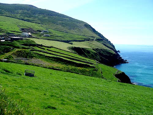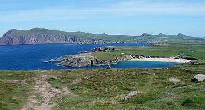Grün und blau sind die dominierenden Farben an der Spitze von der Halbinsel Dingle.