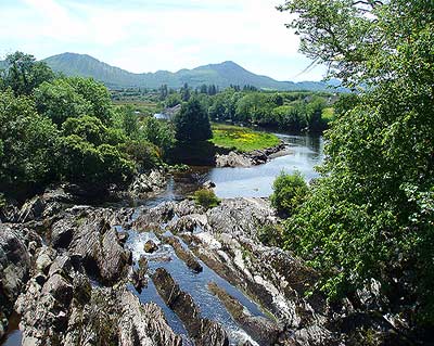 einen Abstecher nach Killorglin. Der Ort ist nicht sonderlich attraktiv. Dafür aber ist umso schöner der River Laune, der träge unter einer lang gezogenen Steinbrücke fließt. Wir entdecken eine schattige Bank vor einem Pub direkt am Ufer und begießen den heutigen Tag. Natürlich mit einem eiskalten Pint Guiness ...