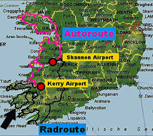 Landesinnere auf den ruhigen Nebenstraßen kennenzulernen, und zum Anderen fahren wir die Kerryrunde im Uhrzeigersinn. Das hat den großen Vorteil, daß die zahlreichen und berüchtigten Touristenbusse auf der Ringstraße