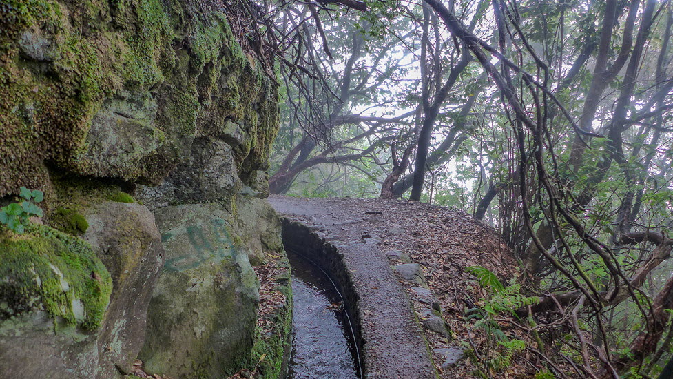 Die Levada führt immer tiefer in den Nebelwald. Lorbeerbäume klammern sich an die Hänge. Sie sind einzigartig und wachsen nur auf Madeira und auf den kanarischen Inseln..