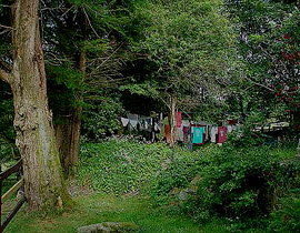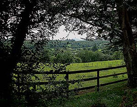 Von einem Steinwall umgeben ist der Weg, der vom Hostel in das reizvolleTal des River Lee hinunterführt.