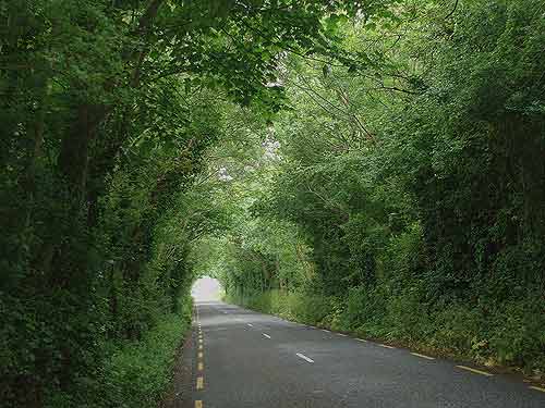 wohlwollendes und freundliches Nicken. So sind sie nun mal, die Iren! Freundlich, herzlich und direkt ... Solch nette Zwischenfälle sind recht aufbauend, denn das Auf und Ab in einer überwiegend eintönigen Gegend setzt sich auch heute fort. Vielleicht liegt es aber auch daran, daß wir mittlerweile, was schöne Landschaften betrifft, ganz schön verwöhnt sind. Dazu kommt aber auch die Tatsache, daß wir vom Radeln müde sind und die Motivation 3 Tage vor dem Abflug etwas nachgelassen hat. Kurz vor Ballingarry wird die Gegend wieder reizvoller. Wir durchqueren eine wundervolle Allee. Die Kronen von