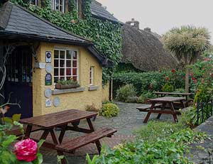 Schöne Fotomotive liefern die riedgedeckten Häuser in Adare.