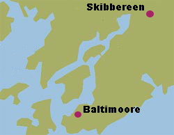 entstanden und machen dadurch die Landschaft zwischen Baltimore und Skibbereen ungemein interessant. Teilweise sieht der verzweigte Meeresarm wie ein Fluß aus, der sich schlangenförmig durch die Landschaft zwängelt. Oder ist es vielleicht doch eine Seenkette, die