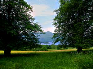 Parklandschaft bezeichnen, die von Menschen angelegt worden ist. Ausgedehnte Wiesen mit herrlich großen Bäumen. Dazu noch eine Seenlandschaft und den höchsten Berg Irlands im Hintergrund. Leider ist ein großer Teil der Flächen privatisiert. So haben sich hier einige Golfclubs und Nobelhotels breit gemacht, deren großflächigen Anlagen fast die Hälfte der