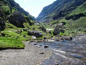 Wir radeln durch das sehr reizvolle Black Valley und nähern uns allmählich den Bergen und dem noch zu bezwingenden Gap of Dunloe.