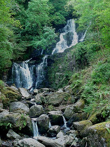 Wir radeln weiter durch einen dschungelartigen Wald bis nach Killarney. Hier tobt der Mop. Viel Tourismus, Restaurants, Boutiken, Geschäfte und natürlich Pubs mit leckerem Guiness und guter Musik. Für uns steht fest, daß wir uns morgen früh hier einquartieren werden. In einem der Independent Hostels buchen wir daher jetzt schon für zwei Betten. Die Jugendherberge ohne Einkaufsmöglichkeit liegt einfach zu weit weg von Killarney!