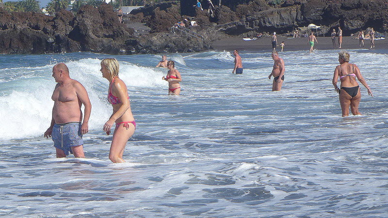 Warten auf die große Welle! Nicht selten wird der ein oder andere Tourist von den heranbrausenden Wassermassen einfach umgerissen.