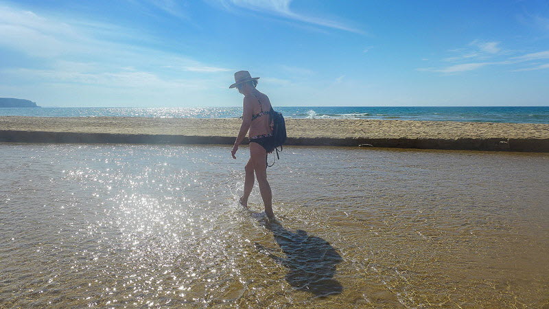 Lichtspiegelungen im Wasser machen das Barfußwandern am Strand noch umso faszinierender.