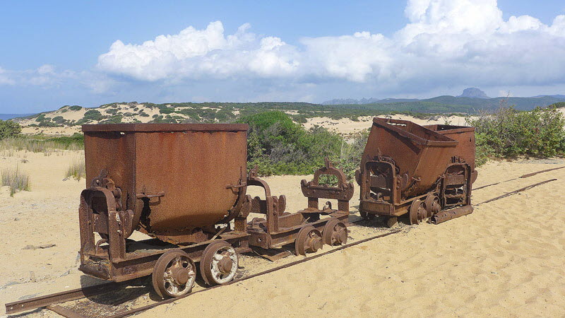 Ein paar verrostete Loren erinnern daran, daß hier mal Erz bis zur Schiffsmole transportiert wurde. Der Rundweg geht zunächst an der ehemaligen Lorenbahn entlang.