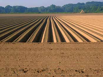 Weite Spargelfelder säumen den Weg. Wie auf einer Richtschnur gezogen liegen die Erdwälle in feinen Linien nebeneinander. Licht und Schatten bringen diese Linearität noch mehr zur Geltung. Teilweise sind ganze Felder mit Folien überspannt. Wenn der Wind darunter bläst, sehen sie im reflektierenden Sonnenlicht aus wie glitzernde Seen.