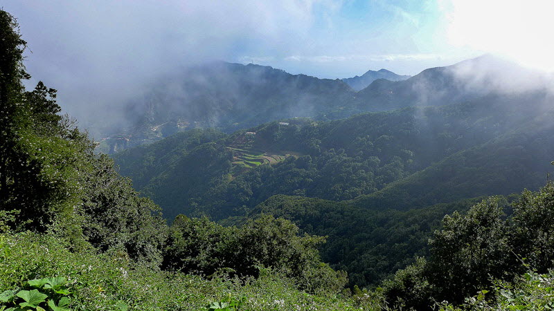 Nebelschwaden kriechen an den steil bewachsenen Hängen entlang, und ich weiß das ich die Nebelwälder im Anagagebirge erreicht habe.