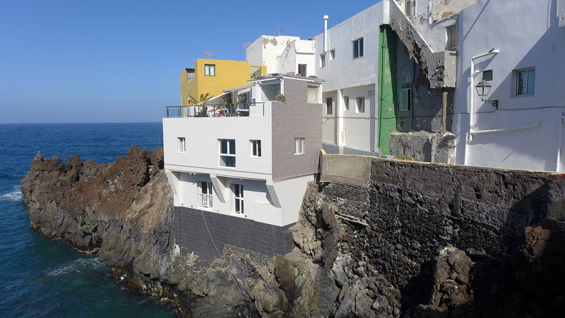 Die Häuser kleben regelrecht an den Felsen. Näher kann man dem Wasser kaum sein. Die schöne Dachterasse gehört zu einer Ferienwohnung, die man mieten kann!