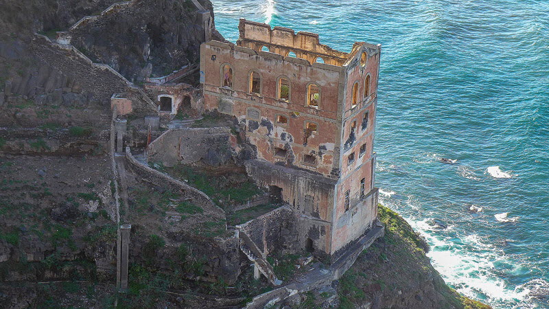 Spektakulär zwischen den Klippen liegt die Ruine Casa Hamilton aus dem 19. Jahrhundert.