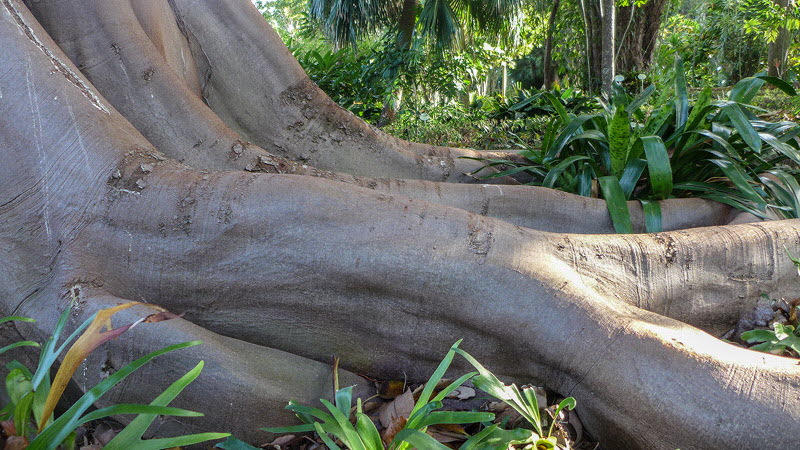 Wie ein überdimensional großer Fuß sieht das Wurzelwerk dieses mamutartigen Baums aus.