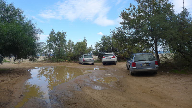 Schotterpisten führen zu den Parkplätzen der abgelegenen Naturstrände.