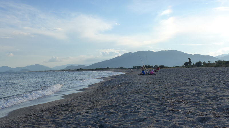 Gleich neben unserem Hausstrand liegt der weite Sandstrand von Porto Corallo.