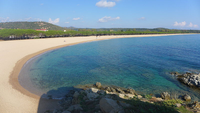 Blick auf den nördlichen Teil des Bilderbuchstrandes Torre di Bari.