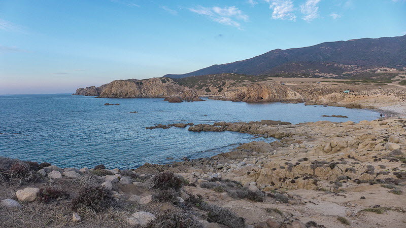 Überwiegend felsig ist der Küstenabschnitt vom Cap Pecora. Von hier aus geht ein Wanderweg zu einem Küstenabschnitt mit skurilen Steinformationen.